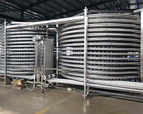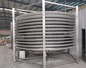 ●SUS304網(wǎng)帶抗拉力強(qiáng)高,使用其壽命大大延長,網(wǎng)帶兩側(cè)鏈片上設(shè)置擋邊,防止物料的滑落,適用于不同凍品的單凍及盤凍。